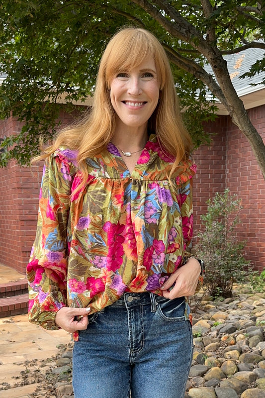 Bright Floral Abstract Printed Blouse
