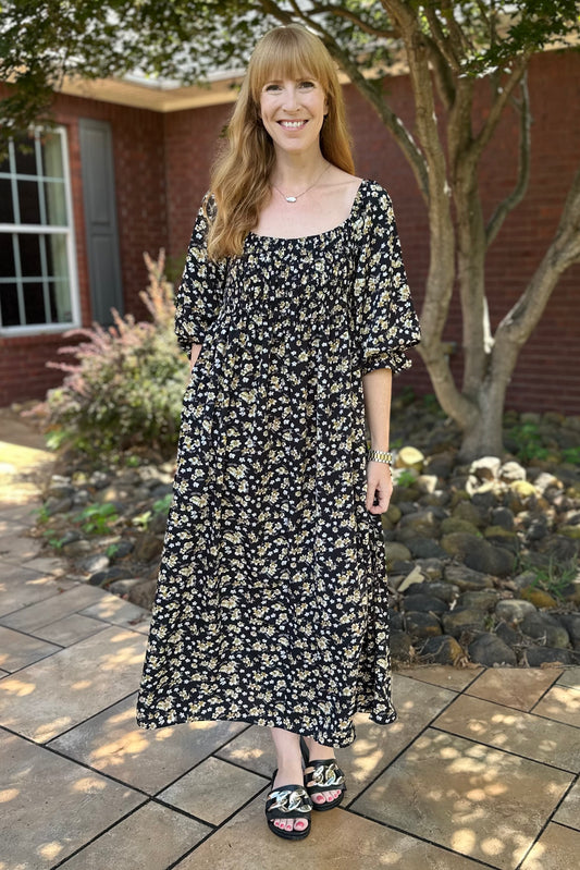 On & Off Shoulder Smocked Floral Midi Dress w Pockets