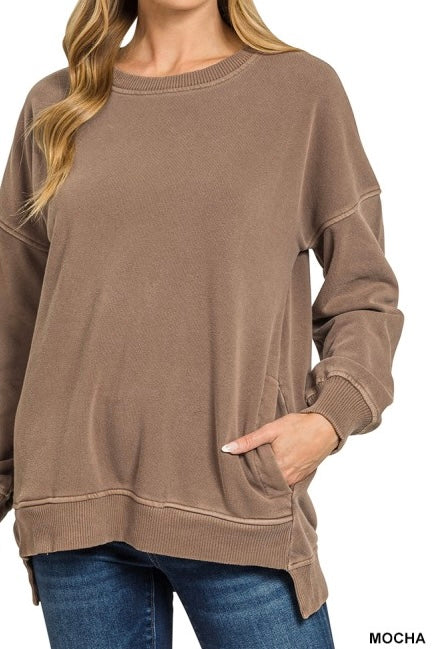 Pigment Dyed Fleece High Low Pocket Sweatshirt
