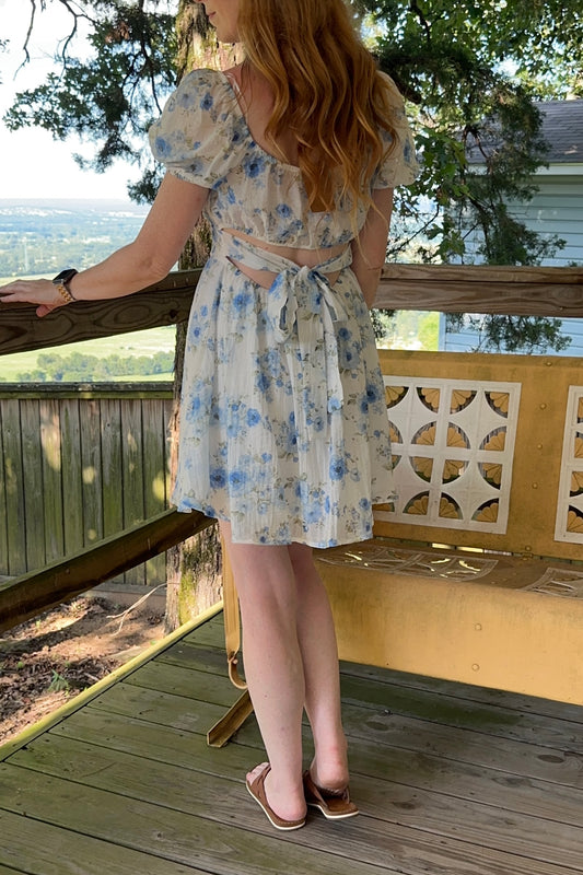 Sold outBlue Floral Corset Back Mini Dress