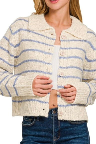 Blue/Taupe Stripe Cardigan