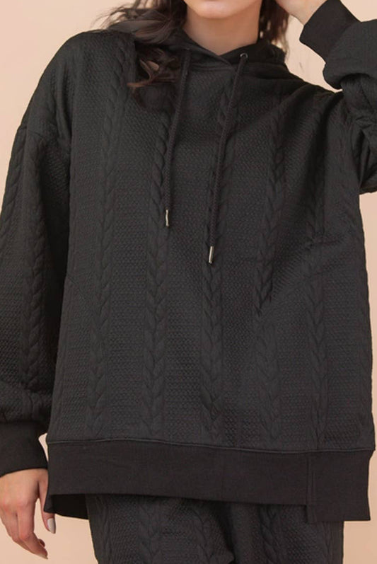 Oversized Cable Knit Textured Knit Hoodie/Pants Set