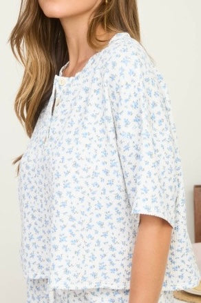 Floral Ribbed Short Sleeve Henley