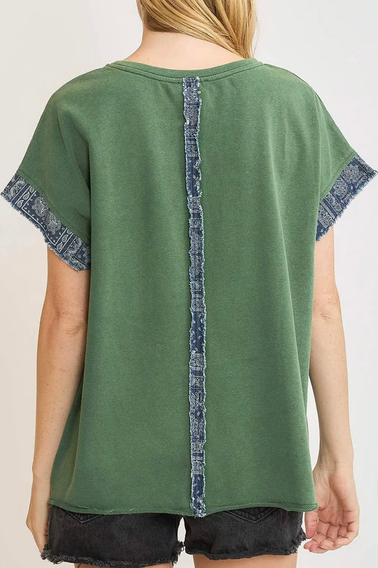 Green/Denim Patchwork Peace Sign Top