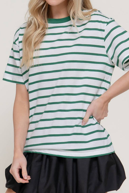 Short Sleeve Crew Neck Y/D Stripe Oversize T-Shirt
