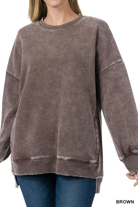 Acid Wash Ribbed Side Inset Fleece Sweatshirt