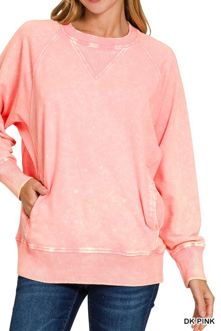 Acid Wash French Terry Pocket Pullover