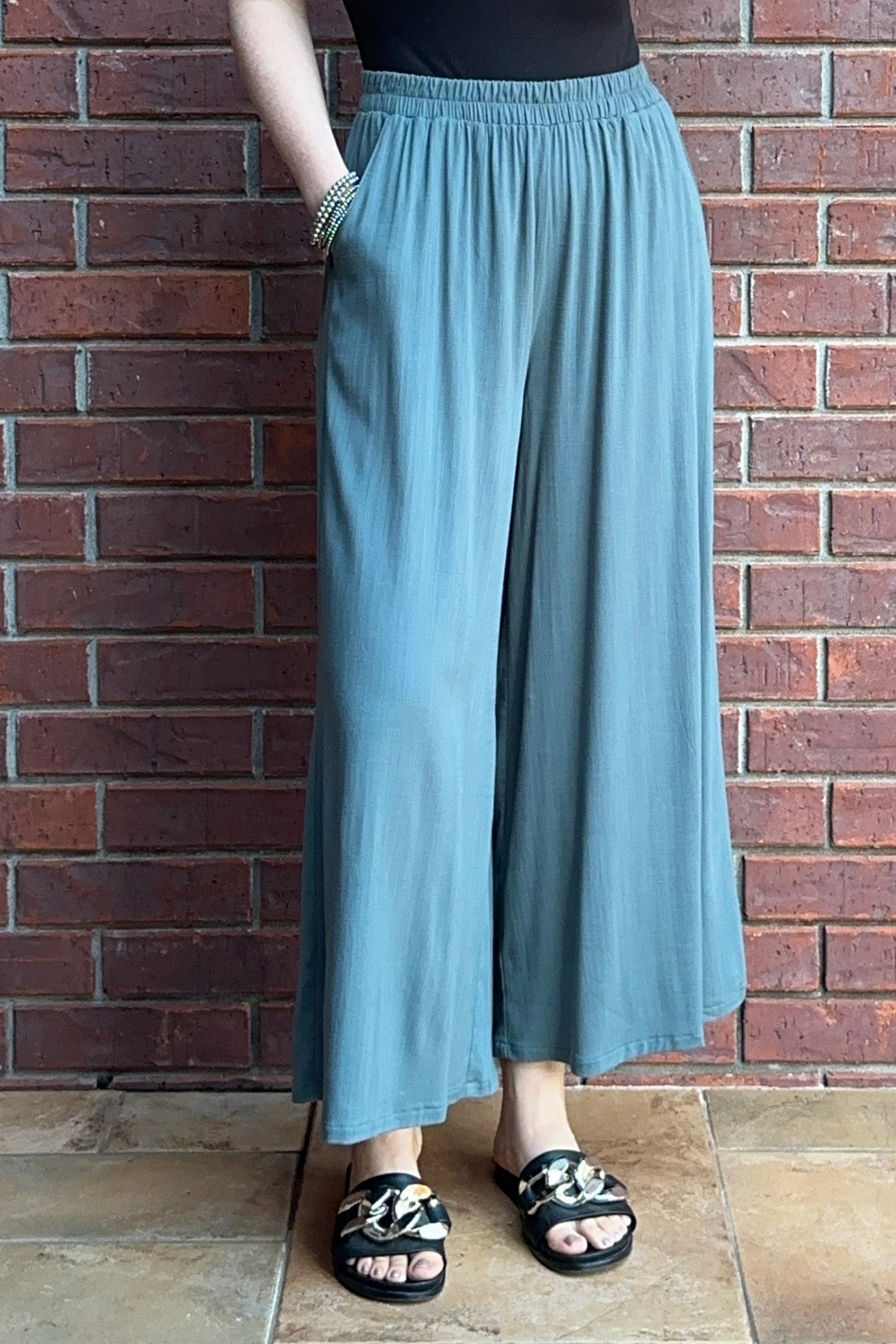 WOVEN ELASTIC BAND PANTS WITH POCKET - ELASTIC WAISTBAND - WIDE LEG