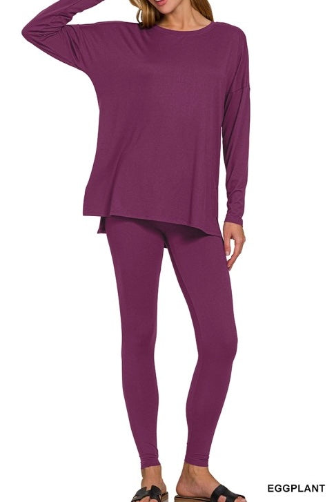 BRUSHED DTY MICROFIBER LOUNGEWEAR SET - BUTTERY SOFT - PERFECT STRETCH & RECOVERY * TOP TOTAL BODY LENGTH: 28.5"(front), BUST: 43" approx. - MEASURED FROM SMALL * LEGGINGS TOTAL WAIST: 22", INSEAM: 25.5" approx. - MEASURED FROM SMALL