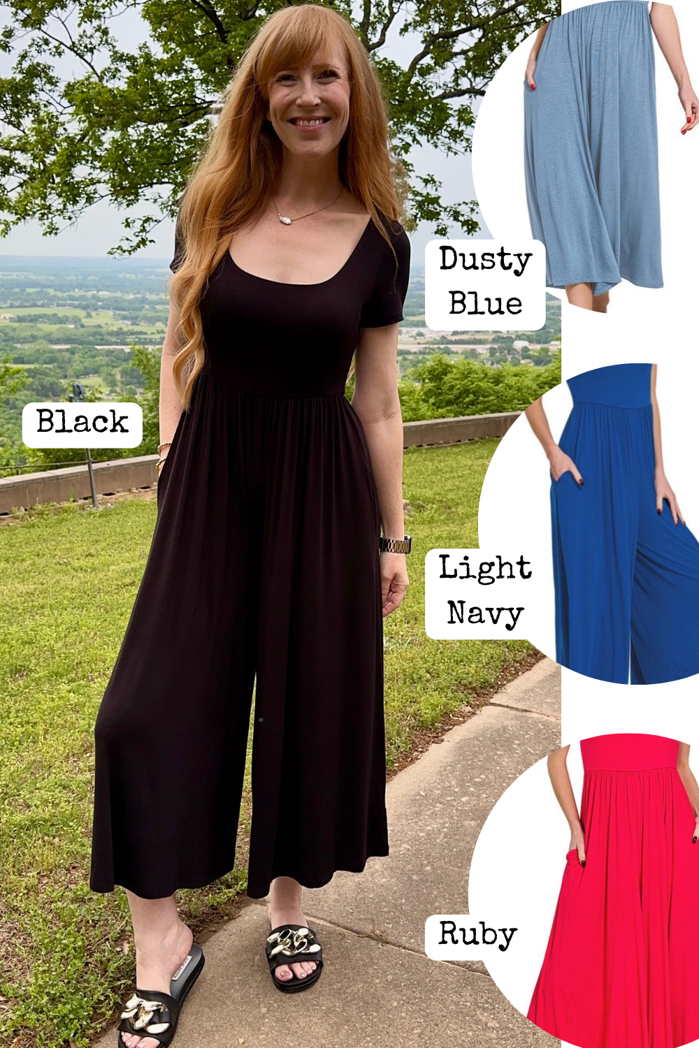 DOUBLE-LAYERED SHORT SLEEVE JUMPSUITS FRONT TOP BODY LENGTH: 13.5", WAIST:26", INSEAM: 21" approx. LEG OPENING: 43" - MEASURED FROM SMALL