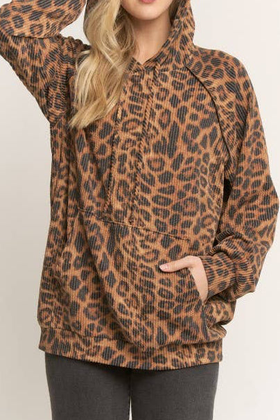 Ribbed Leopard Slouchy Hoodie