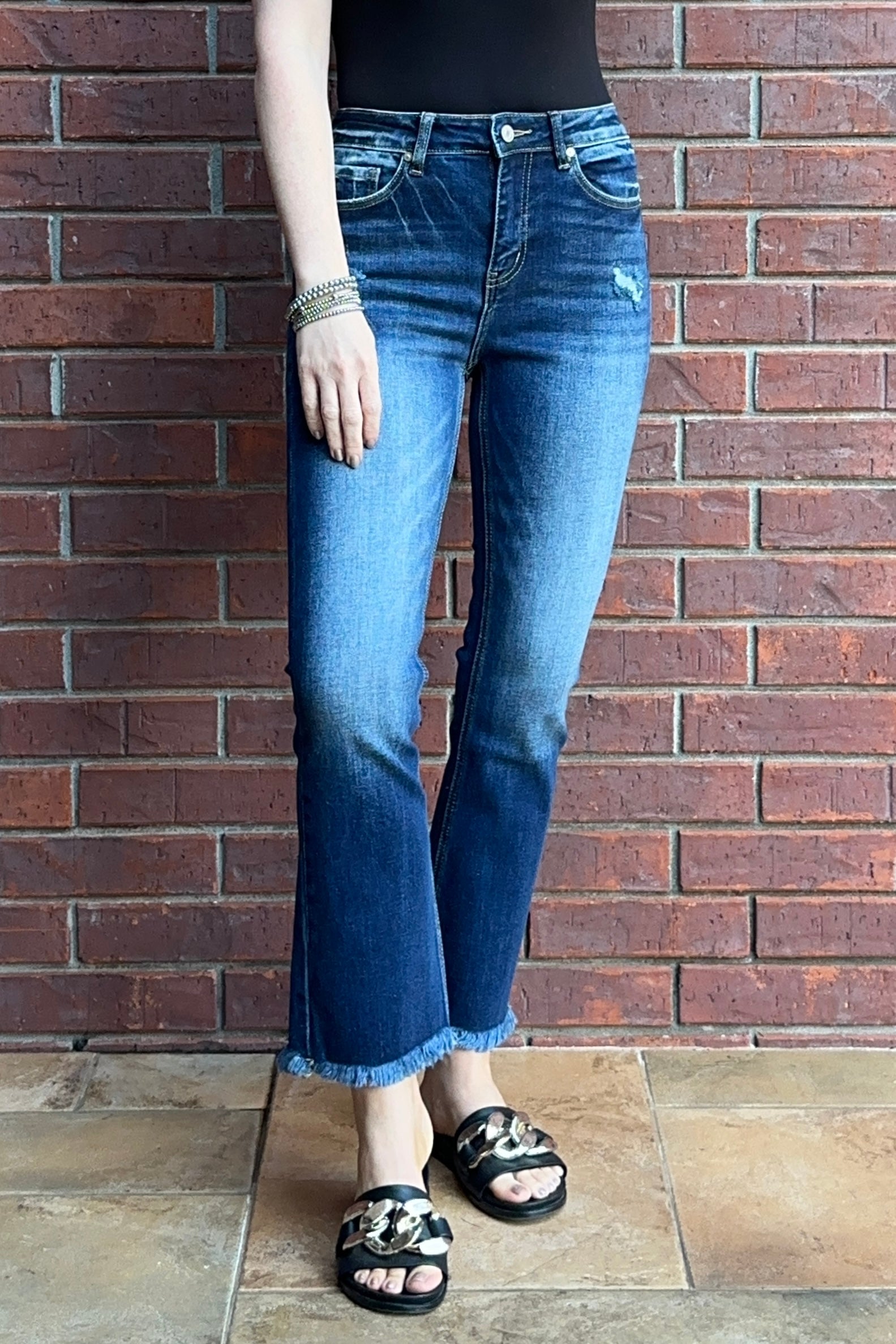 HIGH RISE STRAIGHT RAW HEM DENIM PANTS - STRETCH - DISTRESSED FRONT RISE: 10.25 ", INSEAM: 27" approx. LEG OPENING: 16.00" approx