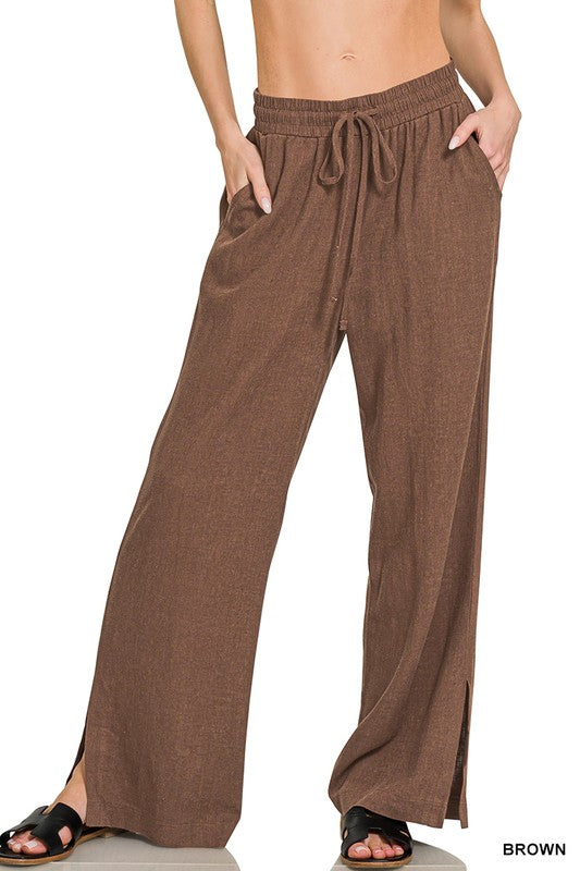 LINEN DRAWSTRING PANTS - ELASTIC WAIST TOTAL BODY WAIST: 27.5", INSEAM: 29" approx. - MEASURED FROM SMALL