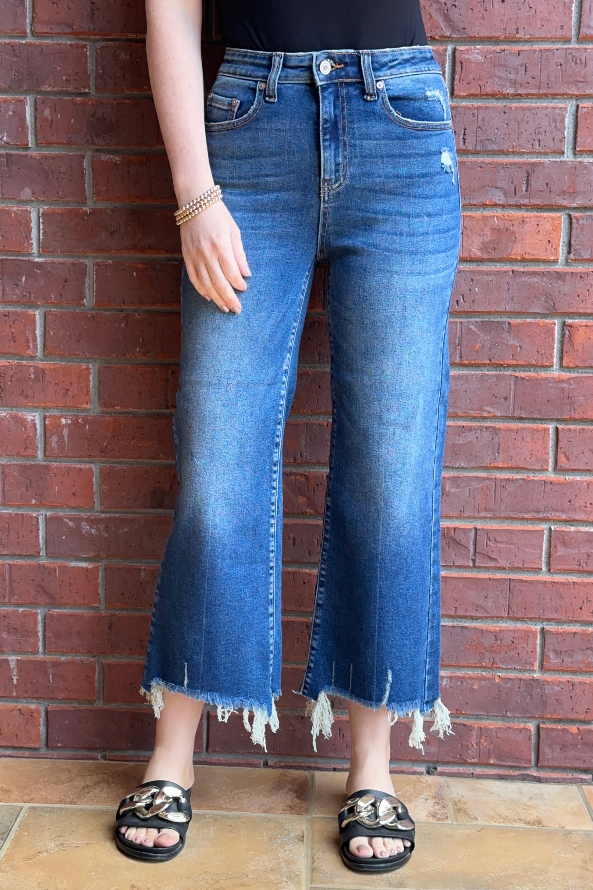 MID RISE STRAIGHT RAW HEM DENIM PANTS FRONT RISE: 11 ", INSEAM: 25" approx. LEG OPENING: 10.75" approx. MODEL IS 5'9" WEARING SIZE 27