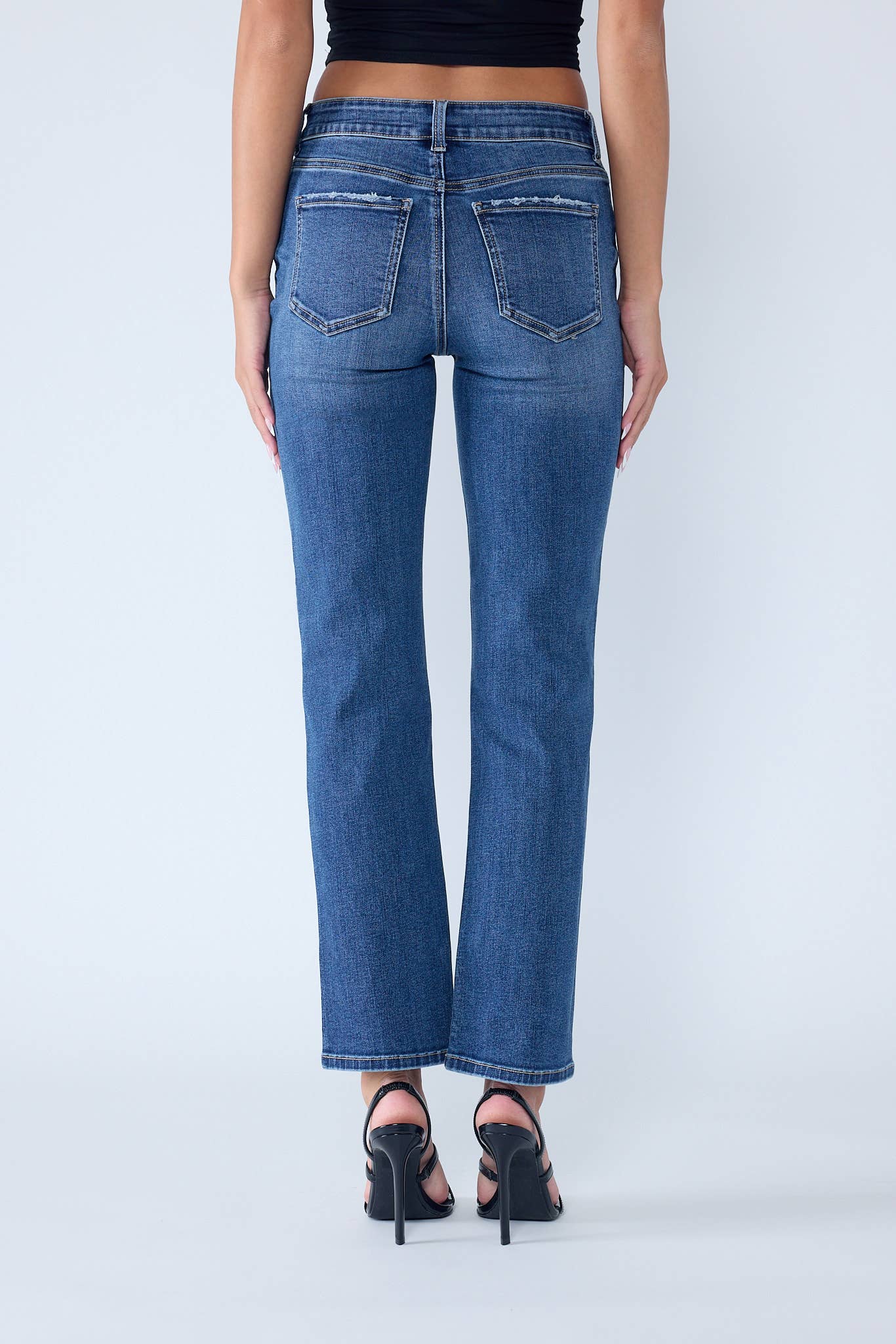 High rise Straight Jeans with Slight destruction. Stone wash with hand sanding, whiskers, chevron, tacking, grinding, destruction. One button closure. Zipper Fly. Regular Hem. Content: 70% Cotton / 20% Polyester / 7% Viscose / 3% Spandex Measurements from Size 3(26) Inseam: 29” Front Rise: 10” Leg Opening: 15” Model measurements Sydney is wearing size 3(26) Height: 5' 9.5" Bust: 33" Waist: 25" Hips: 35" Style:
